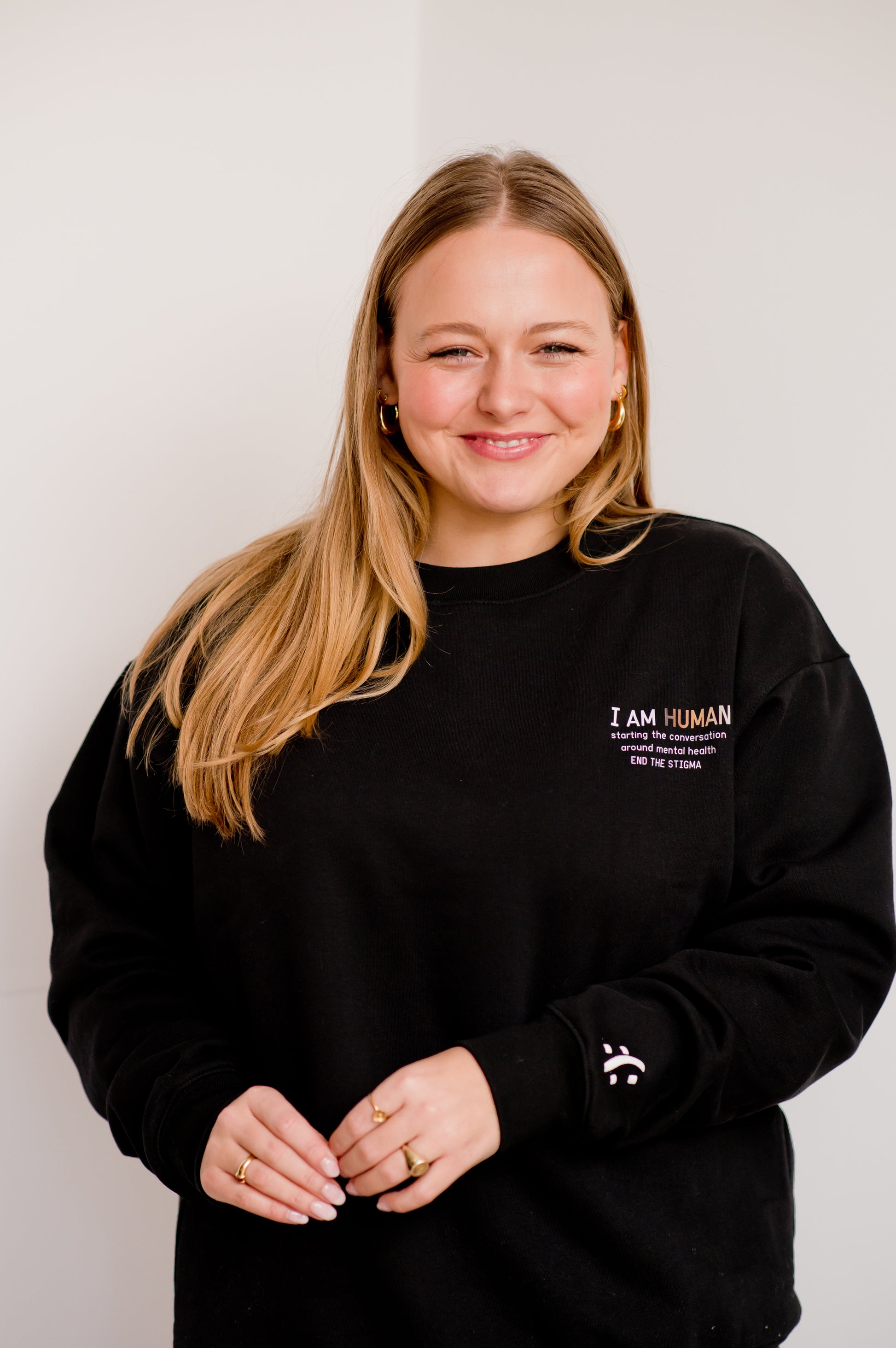 - I AM HUMAN logo printed on left chest with the words “starting the conversation around mental health END THE STIGMA” printed underneath